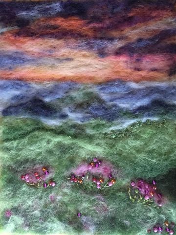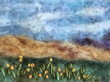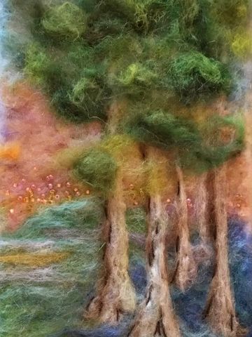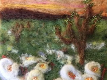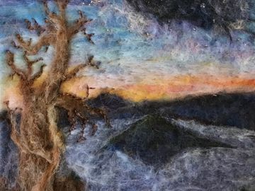Hand felted with wool from the United States and custom made to to your order. No two are ever identical. So I do not ship until you have approved the photo of the finished work. Many costumers prefer to do their own matting and framing. Framing without glass results in a crisper more vibrant picture, but the wool may collect dust. When framing includes glass a shadow box or the use of several mats is recommended.